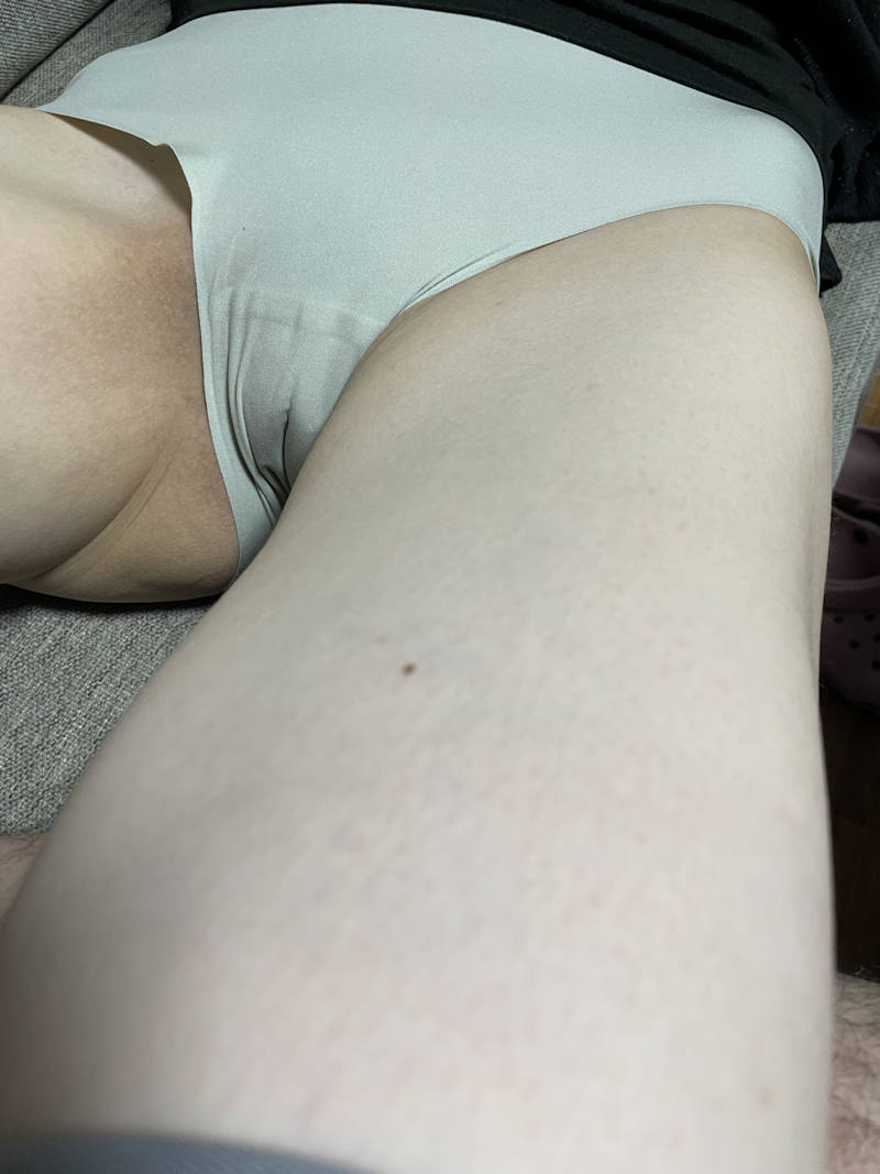 パンチラ女子のアソコに食い込んでいるマンスジ画像。