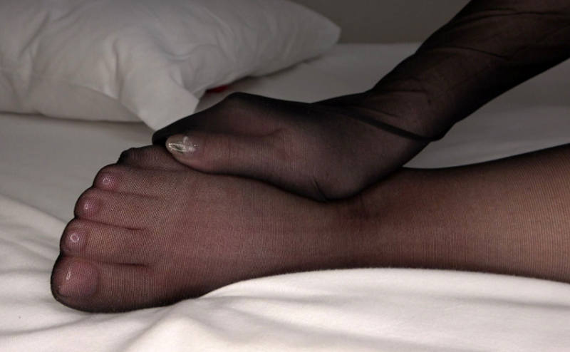 下着、足裏、お尻が透けて見えるパンティストッキング。
