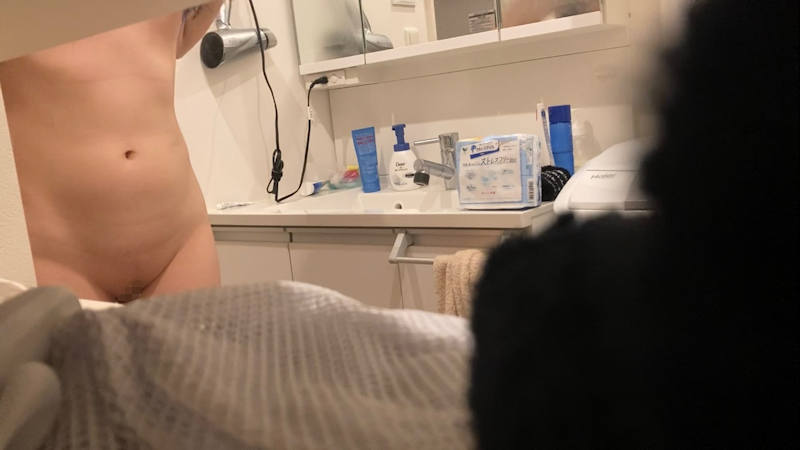 お風呂上がりにドライヤーで髪の毛を乾かしている嫁の隠し撮り。