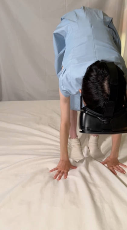 VRゴーグルを装着して仮想現実の世界を体験している女の子が無防備過ぎるエロ画像。