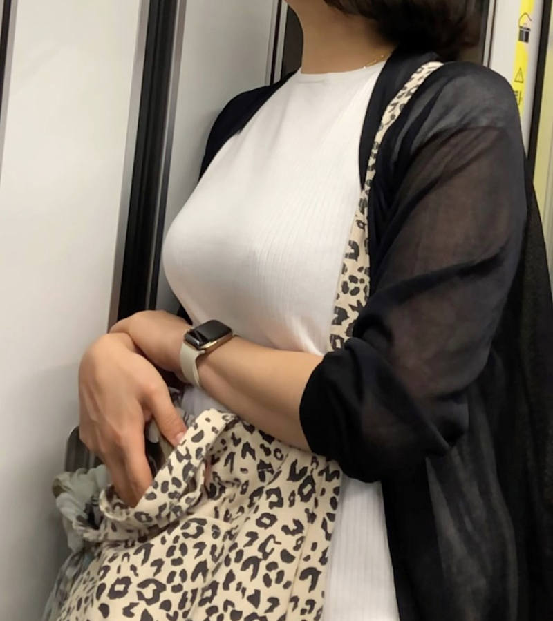 そこにいるだけで存在感抜群な着衣巨乳女子のエロ画像。