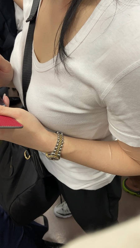 主張強めなバストの膨らみをまとめた、おっぱい大きい着衣巨乳女子のエロ画像。