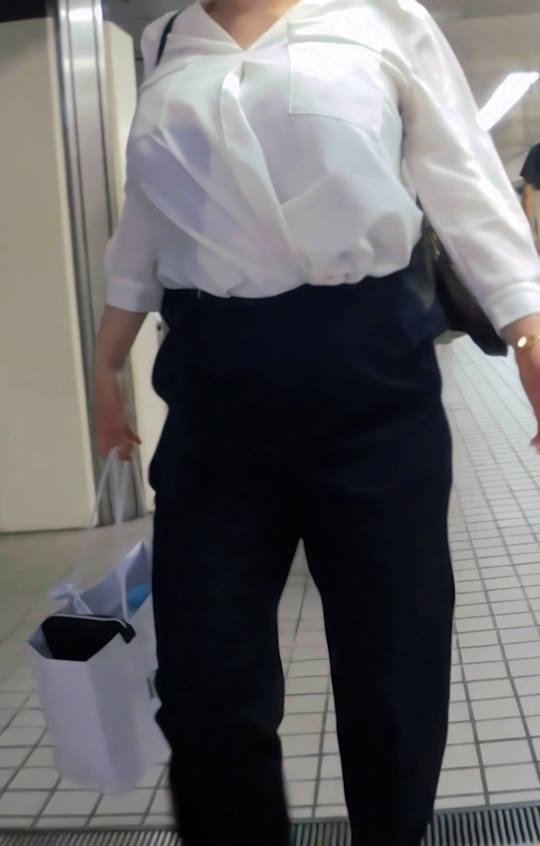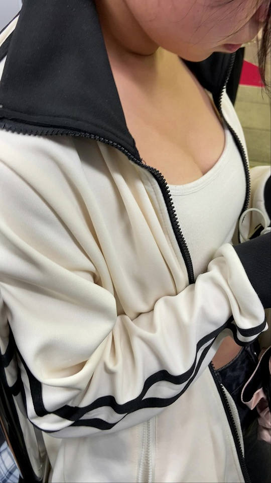 下からのダイナミックなアングルで見上げる着衣巨乳画像。