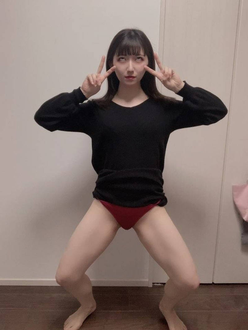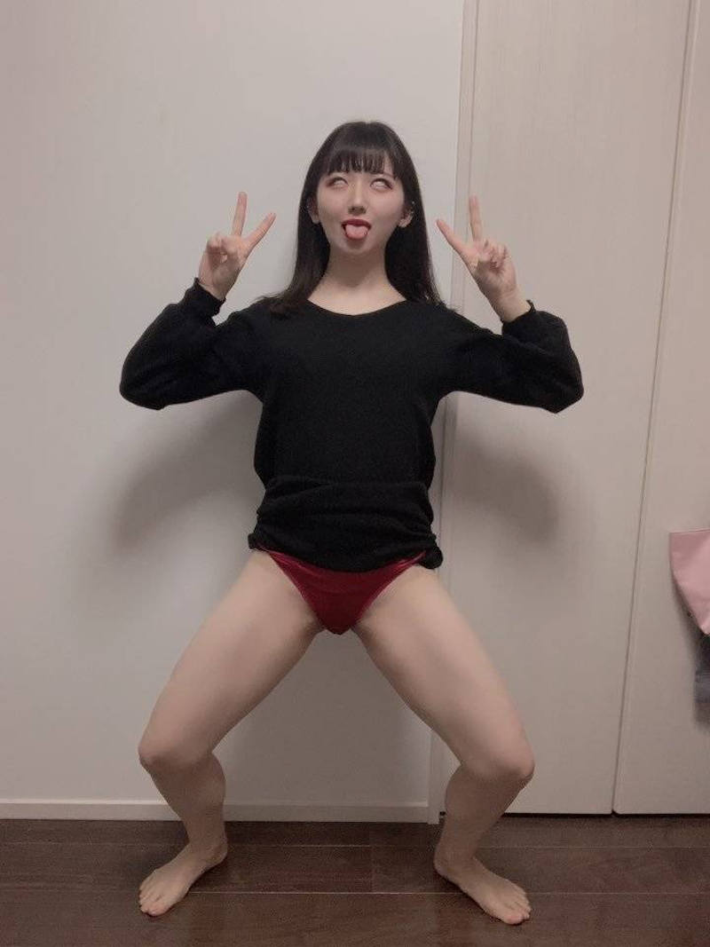 下着姿でガニ股をしたり、全裸でガニ股をしたり。