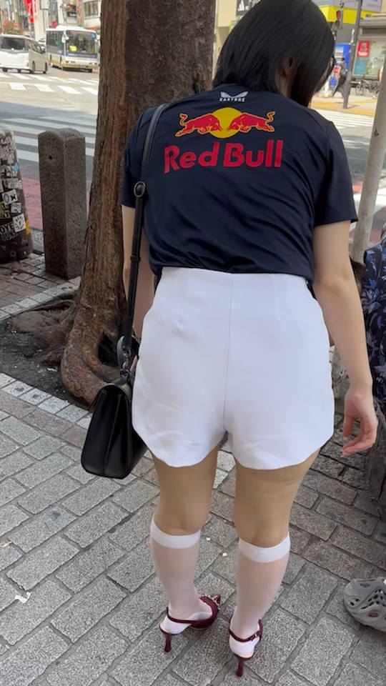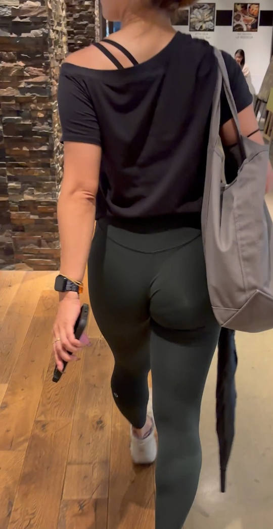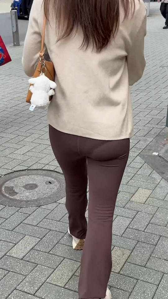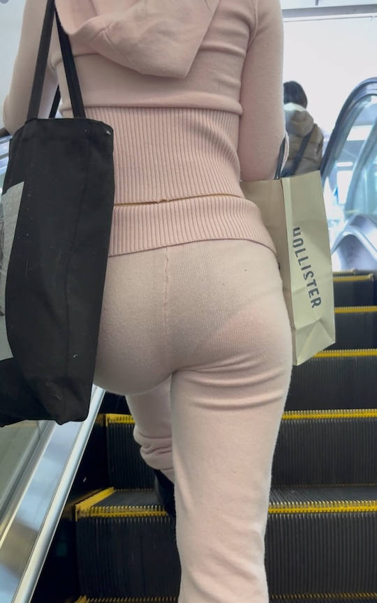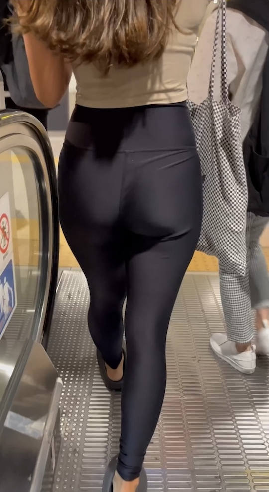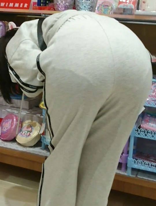 お尻の割れ目に生地が食い込むスパッツ女子。