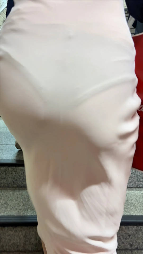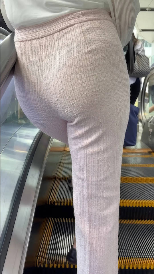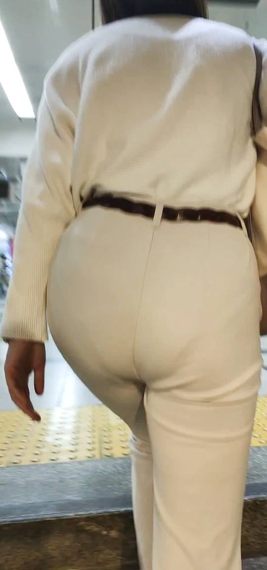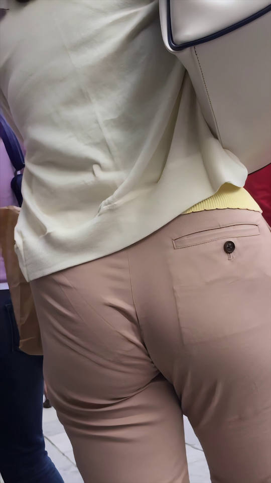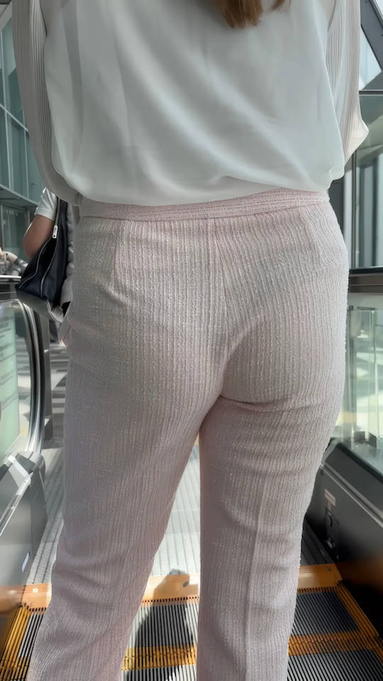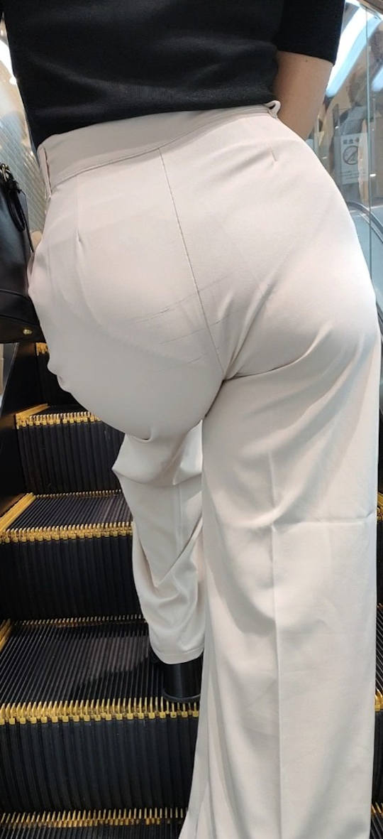お尻の形が丸分かりなハイウエストパンツ女子。