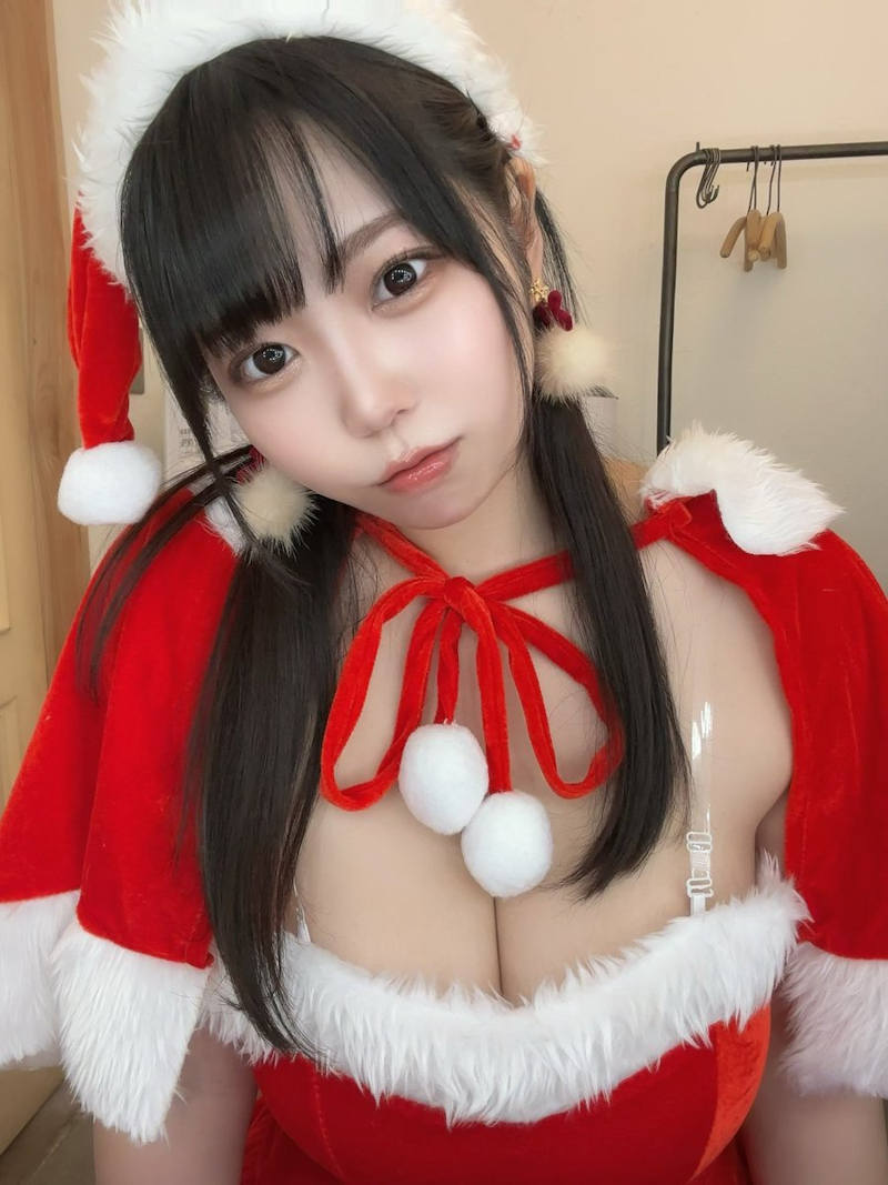 胸元を強調した巨乳サンタガールの胸チラ自撮り。