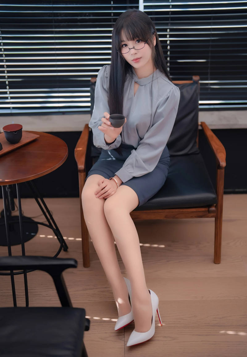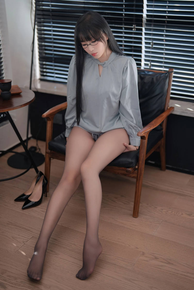 パンティストッキングとメガネを着用した、パンスト眼鏡OLさんのエロ画像。