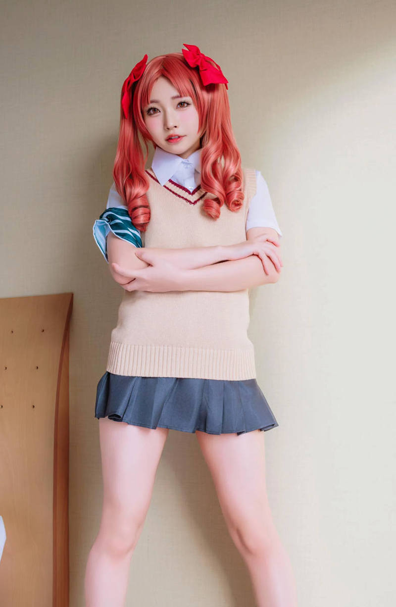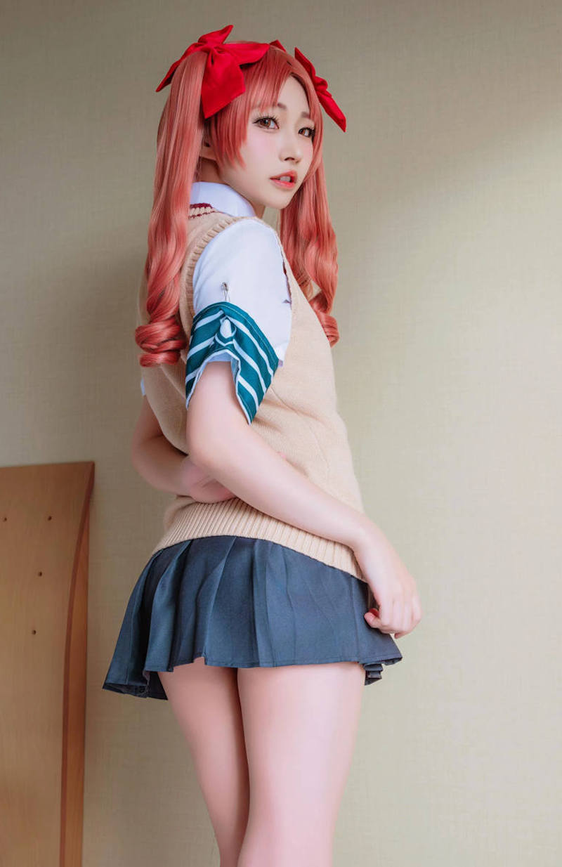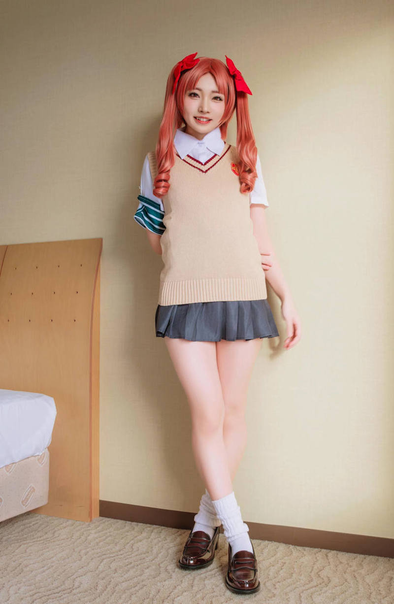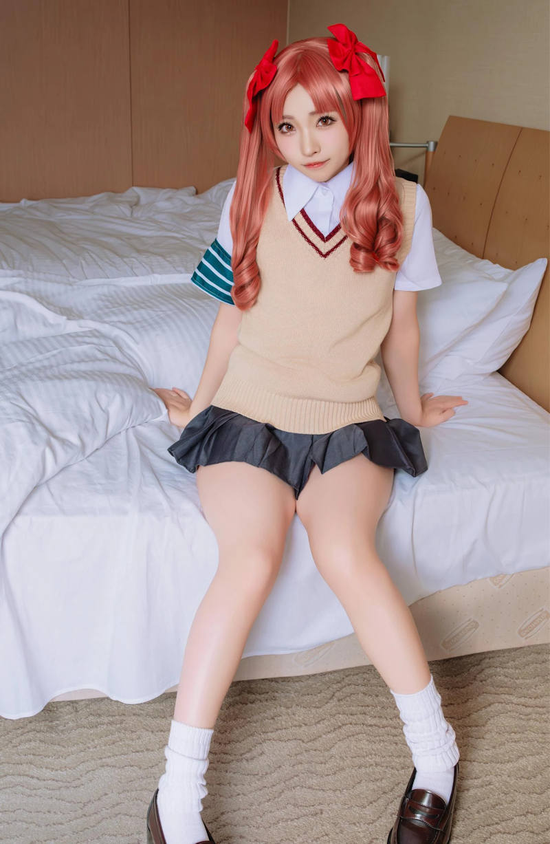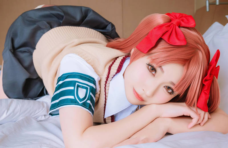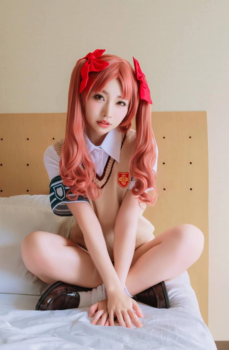 おっぱいが小さくて可愛らしい顔をしている、ピンク髪貧乳JKのコスプレエロ画像。