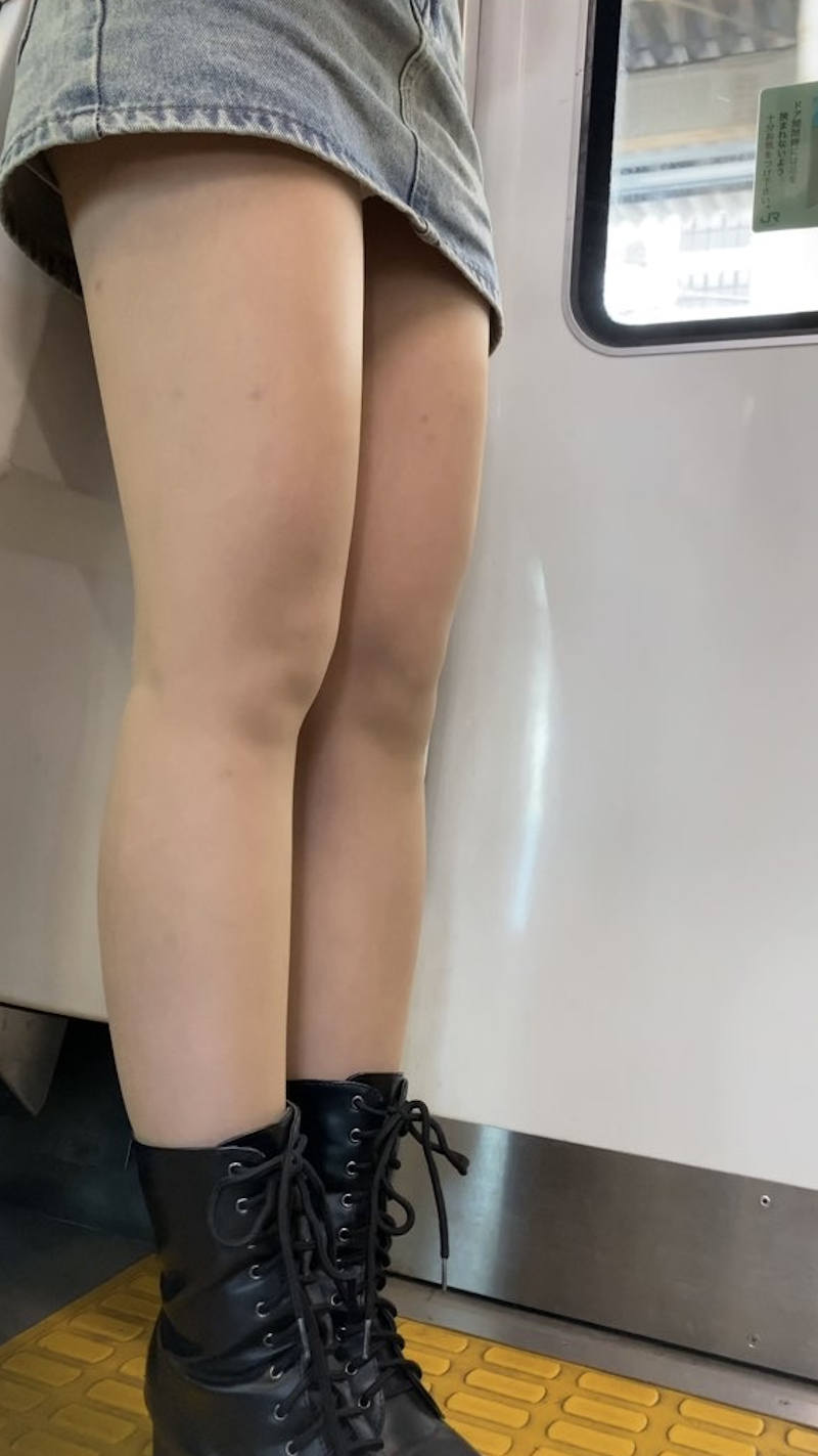 ミニ丈デニム女子の太もも画像 全77枚。