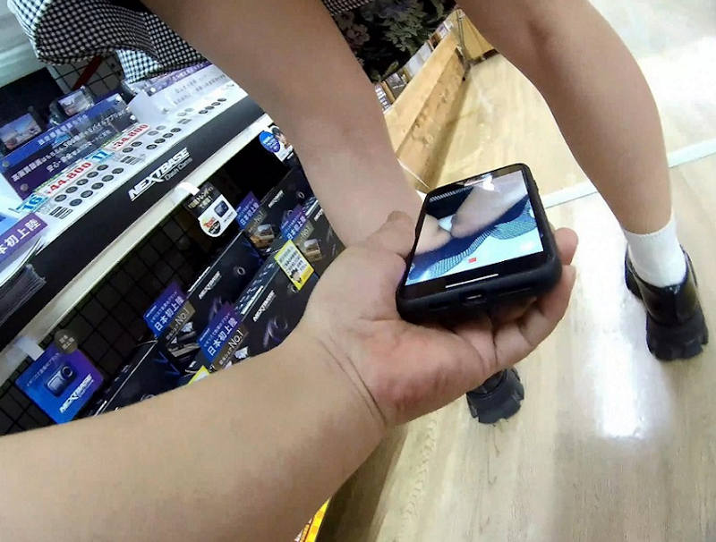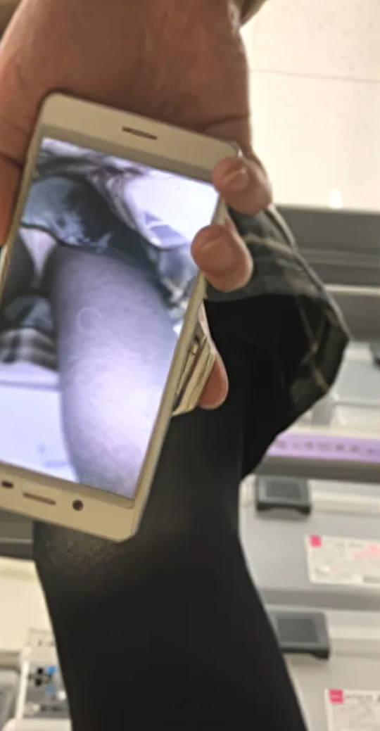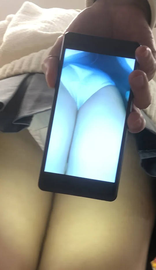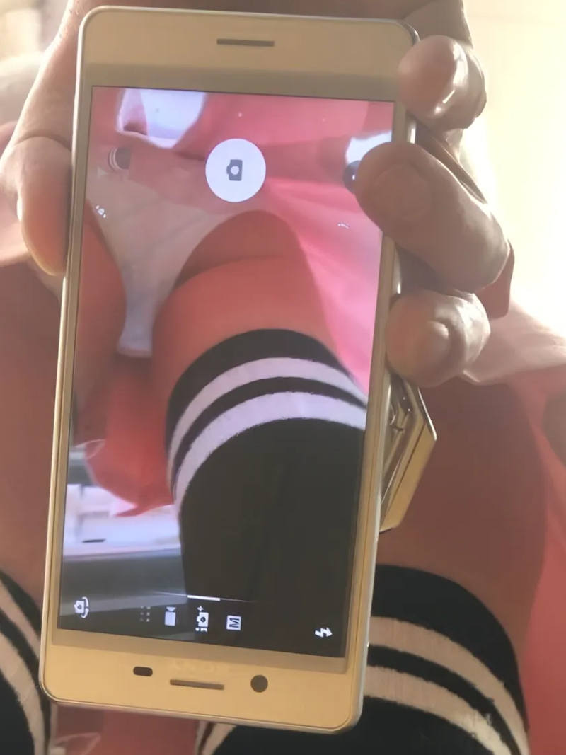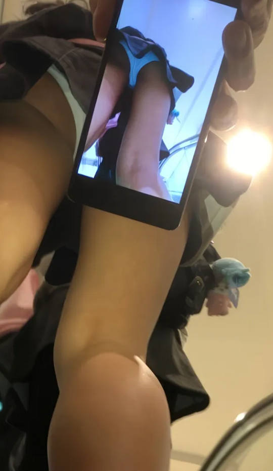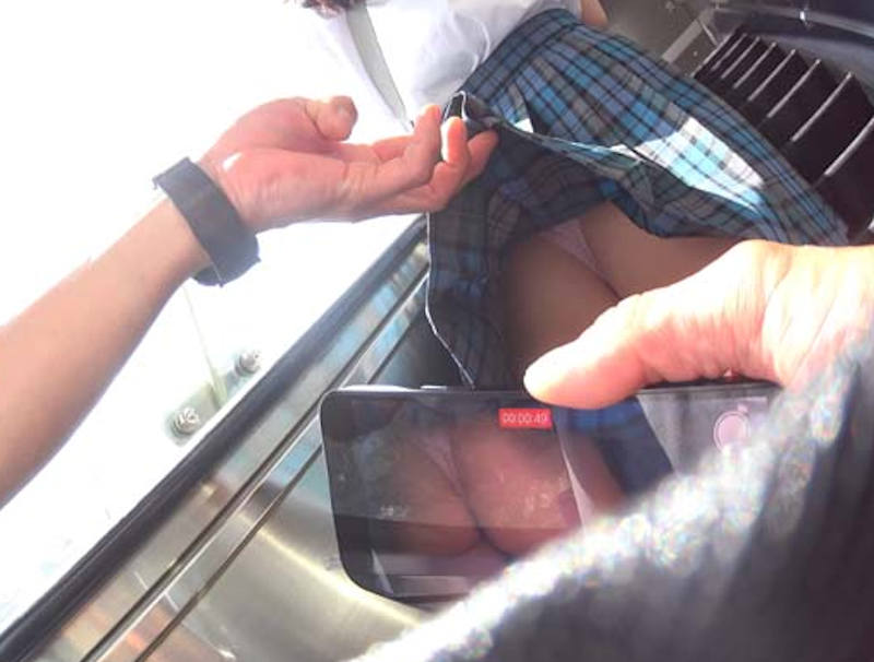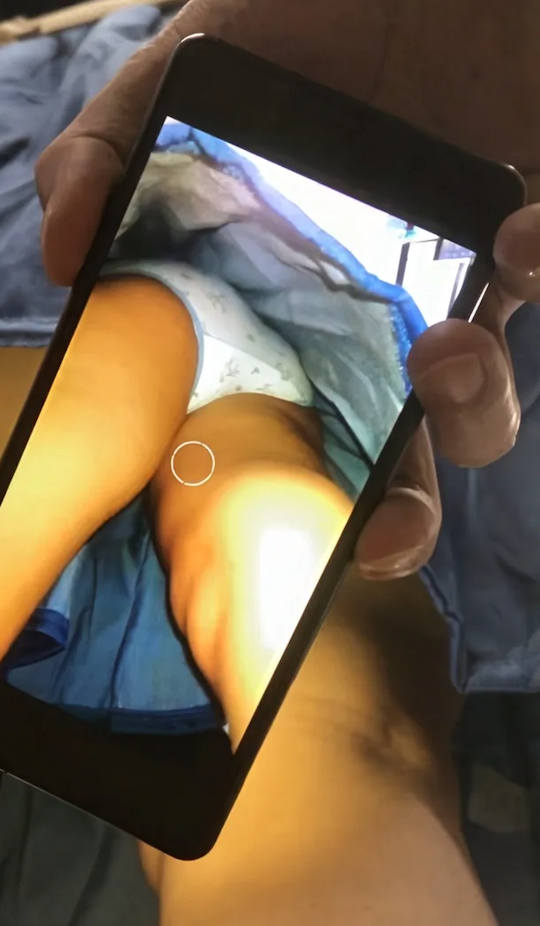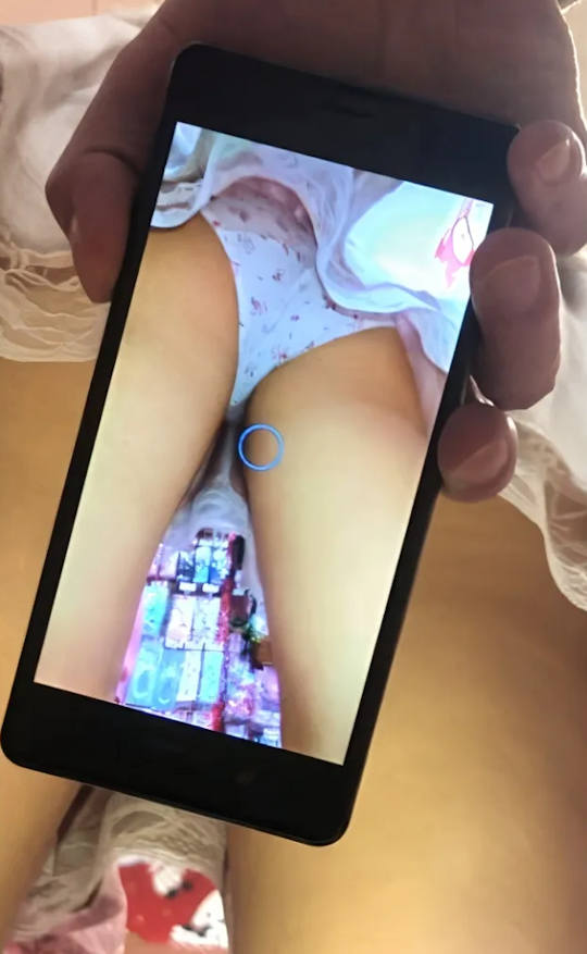 スマホのカメラ機能を使ってスカートの中を撮影しているパンチラエロ画像。