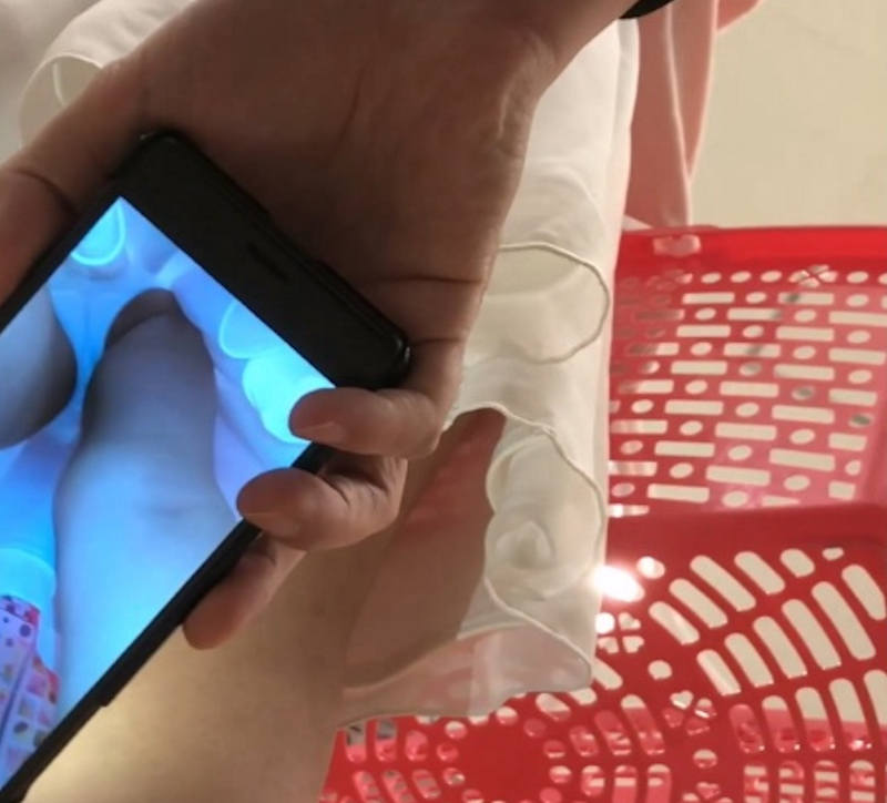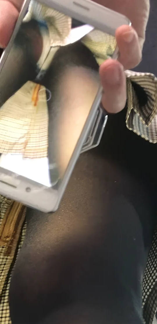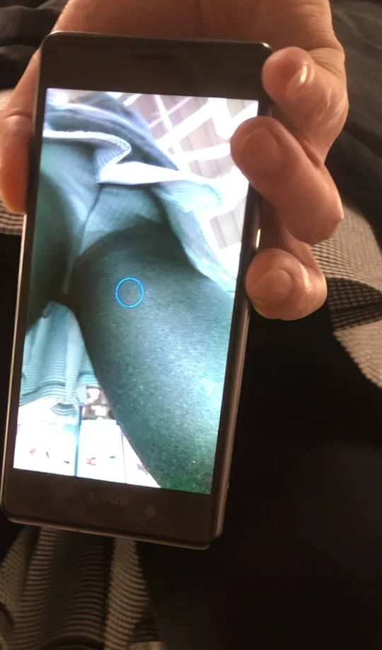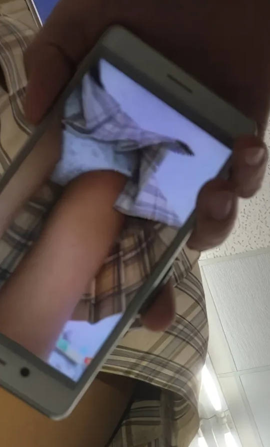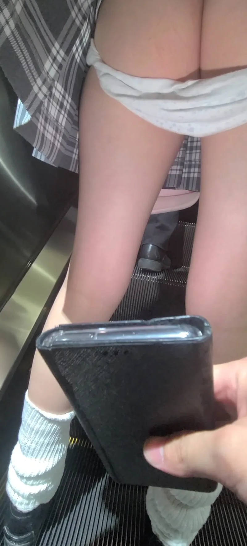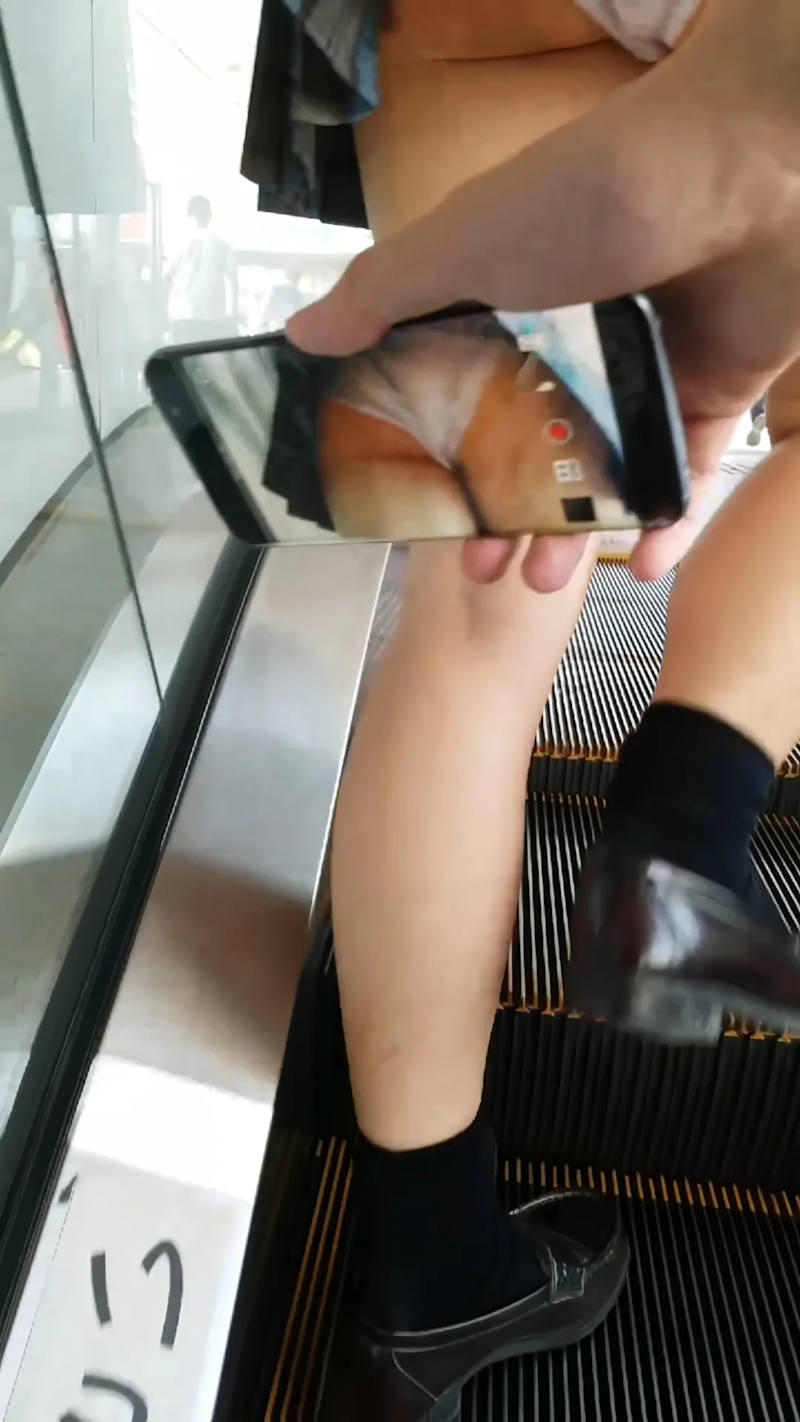 スマホのカメラ機能を使ってスカートの中を撮影しているパンチラエロ画像。